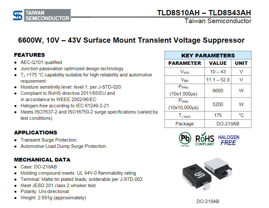 | TLD8S10AH | TSC/台湾半导体 | DO-218AB | 25+ | 750 | 2026-02-09 | |||